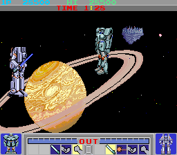 The game is a terrible mess, though. If one of the combatants just keeps running forward with the sword extended - which is what the CPU always does - there's really nothing the other player can do about it, other than doing the same, so no one ever hurts anyone. If someone gets bored and tries anything else, they end up as a sparkling tombstone. Afterwards its possible to watch the duel again, making this the first fighting game with a replay option.