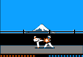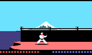 Gameplay consists of fighting fodder enemy after fodder enemy with a equally generic karate character, who can execute punches and kicks at different heights. Each hit depletes health points that can be regained by resting. While it does have the defining elements of a fighter, Karateka feels more like Prince of Persia without the platforming.