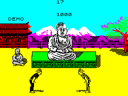 The ZX Spectrum version, even though it loses fidelity as usual, is something special: It allows all three fighters to be controlled by human players. This feature made Fist+ the first fighter to allow more than two people to play at the same time.