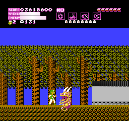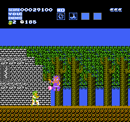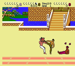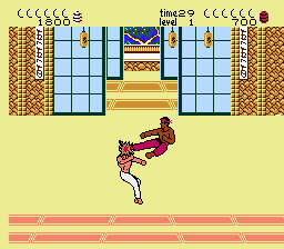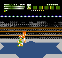 The other mode is a 1-on-1 fighter just like the original, where the player fights against the enemies from adventure mode instead of the usual karate guy. There are four new backgrounds, one of which has the combatants fighting in waist-deep water, which means that no low attacks or jumps are possible.