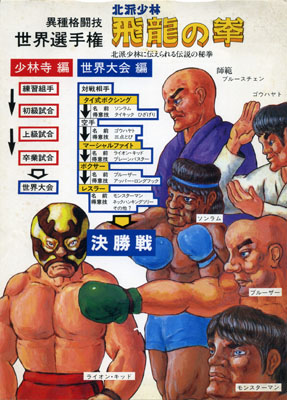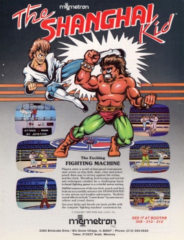 Hiryū no Ken was a long-living series by Culture Brain (Nihon Game by the time of the first release). The original arcade game, Shanghai Kid (Hokuha Syōrin Hiryū no Ken or 北派少林 飛龍の拳 in Japan) is still a pure fighting game. While fighting through a series of boxers, karate fighters, etc., a target briefly appears on either of the two characters seemingly at random. At this point a move can be executed by tapping the attack button and a direction to execute attacks (if the target is on the opponent) or just a direction for blocks (if the target is on the player). The matches end when a character's health meter or the timer are depleted.