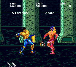 The biggest problem with Gladiator is the difficulty. Other than the first few guys, opponents block every attack thrown at them. Their shields can be damaged, but this doesn't do a thing to make it any easier. In the Japanese version, the female gladiator's bare breasts are visible when her chest plate is destroyed.