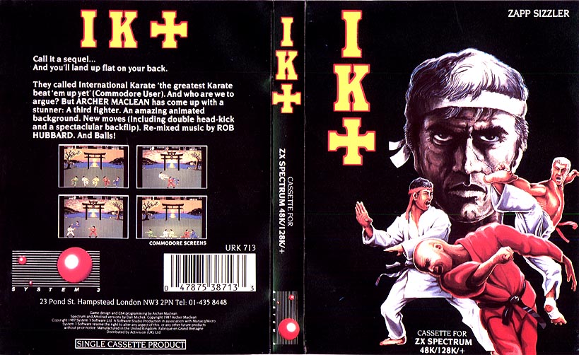 Internatioal Karate soon received an updated version with IK+. Now three combatants would compete in each match, although only two can be controlled by human participants. Also new are a few "cool" moves, like a back flip, a head butt and a [Spagat]-kick in both directions at once.