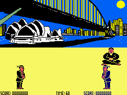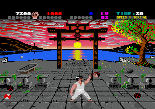 The only thing that really can be traced directly to Karate Champ are the bonus rounds. One makes the player avoid several objects thrown across the screen like in Technos' classic. The other is a brick-breaking challenge, although the only requirement seems to be to hit the fire button once as fast as possible after the referee gives his signal.