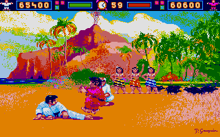 Gremlin Graphics programmed the game for the whole range of 8-bit computers available in the UK, but the differences between them are minimal. They merely vary in the amount of colors, the depth of the parallax scrolling and the abundance of animated back- and foreground objects. Needless to say, the C64 wins in every regard. There is also a sequel called Avenger, which abandons the fighting genre and takes the form of a top-down view action adventure.