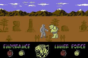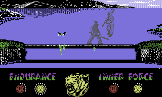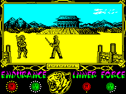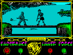 Everyone in The Way of the Tiger has two health bars, represented as dots around a circle. Every time Endurance is depleted completely, it is refilled by sacrificing one dot of Inner Strength. This only results in both the player and the later enemies having ridiculous amounts of health, without adding anything else to the game. The hit detection is horrible, so it's nearly impossible to hit an opponent without getting hurt as well, and the sheer number of enemies that spawn one after another are more than enough to wear the player down.