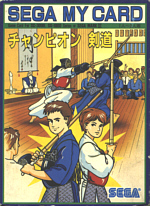 Champion Kendō has two play modes. The first is a tournament where teams of five face off against each other, with the next team member replacing the defeated, and matches are decided by the classical two-point system. Once one team has obliterated the other, the game moves onto the next round against a differently colored team. The 1-on-1 mode uses a health bar instead. It is recharged slowly over time, but every attack also depletes a tiny bit of strength. Most of the time, the game is a rather dry simulation, but there are occasional fights against a ghostly opponent fought in darkness. Sometimes also a cat appears and walks around next to the mat. Champion Kendō is also the first sports competition type fighting game that acknowledges male and female combatants, at least on the box, although gender is not recognizable in the sprites, who always wear protective gear. Unfortunately all combative sports were exempted from Sega's later Champion sports game series for the Master System, including kendō.