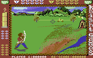 The only variety comes with the "Archery" and "Crossbow" disciplines, where you steer a crosshair to shoot at moving or twisting targets, but you have to take into account the time it takes for your projectile at the destination. There's so many missed chances in this program it's not even funny. A proper implementation of weapon differences could have been so interesting. And where's the lance tournament on horse? For a much better and more ambitious implementation of a more barbaric multi events sports game from around the same time check out Blood 'n Guts.