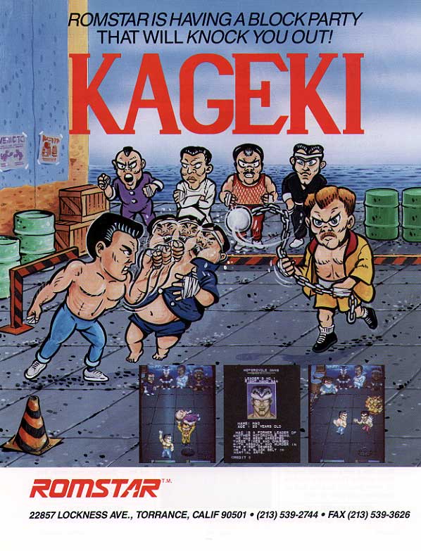 Despite repetitive gameplay, Kageki is relatively fast paced and it does provide a fair challenge, which are its greatest merits. While it isn't very good, maybe even terrible, it is the best Pit-Fighter style fighter. It has horrible music and is ugly as hell, the visual design is actually somewhat interesting.