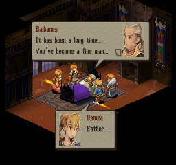 The one big stumbling block, at least for the initial English PlayStation release, is its absolutely dire localization. A similar problem affected Final Fantasy VII, but at least that was occasionally coherent, with some effort given to give each character unique personalities. Here, the best you can expect is dialogue that’s translated accurately but with absolutely no flavor. At worst, you get grammatical nonsense (“I had a good feeling!”, said by generic characters when coming back from quests). Dramatic lines end up sounding ridiculous (“Blame yourself or God” has since become something of a meme), the complexity of the plot is even further jumbled, and the tutorial is so baffling that you’ll probably end up being more confused than if you hadn’t read it at all. One of the later missions actually completely screws up a mission goal: it reads “Defeat Dycedarg’s Elder Brother” (Dycedarg is the oldest brother), when it should read “Defeat Dycedarg, Ramza’s Elder Brother”.
