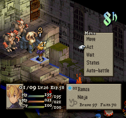 Despite these changes, Final Fantasy Tactics is not an easy game. The enemy AI is often brutal, exploiting all of the intricacies that the player may not be aware of, and single mistakes can cause cascading effects that doom the entire battle.