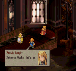 It also mucks up one reference – in keeping with the Ogre Battle tradition and their references to the rock band Queen, the fourth chapter was originally named “Somebody to Love”, after one of their songs. The new PSP translation changes this to “In the Name of Love”. The missing sound test was restored, but the sound novels are still gone. It restores the quotes on the status screen for the generic soldiers; conversely, it removes the incantations that units would randomly say before casting their spells. It’s minor, but these were pretty cool and added to the drama, instead of just displaying the skill name, so why they were removed is a mystery – they were still in the Japanese PSP version after all. Additionally, the cutscenes in the Japanese release were text-only – the characters moved their lips but there was only text at the bottom. The English version fixes this by adding voices, all with appropriate British accents, which adds considerably to the characterizations.