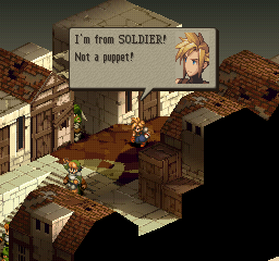 In fact, particularly because of the Job System, the game has an oddly inverse difficulty curve. At the beginning, when your characters are still weak, even the entry level battles can be overwhelmingly difficult, especially if you’re the sort of player who came for the Final Fantasy name and aren’t familiar with SRPGs. But as the game goes along, and you gain more skills, it substantially reduces the frustrations. Even without using exploits, the final chapter grants you Thunder God Cid, who’s so powerful that he feels like a crutch, even if the gamer must have some level of skill in order to get that far in the first place. But to contrast, while you occasionally get other party members with unique skills, many also start out without much training in other Jobs. It may take so long to train them up to the level of the squad you already have, so they might not be worth it. (This is especially the case with Cloud.)