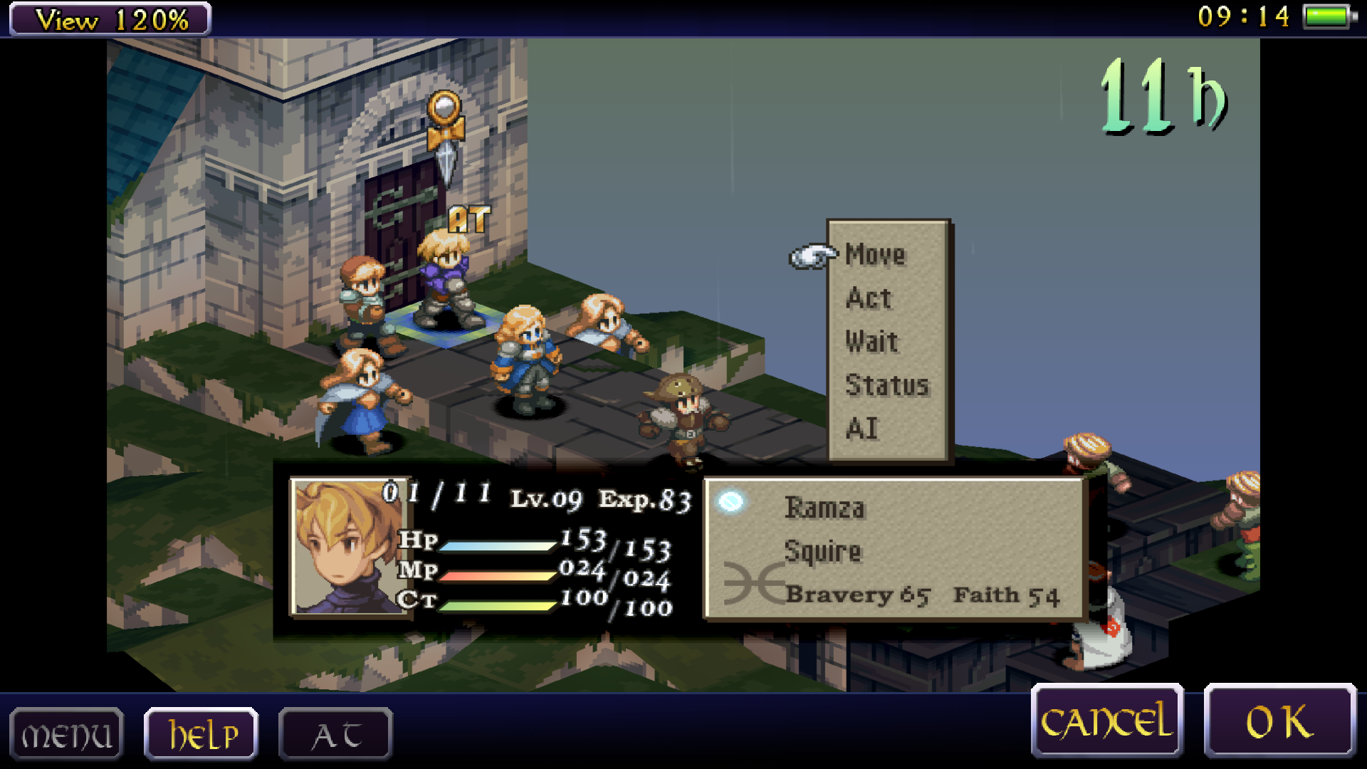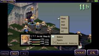 While you can draft generic units that can become any of the basic jobs, there are also story characters, most of which have their own unique Jobs with particularly skillsets: Mustadio is the only Machinist in the game, while Agrias is the only Holy Knight. These factors give the unique characters some ability to stand out. Altogether, it’s a lot more interesting than Tactics Ogre’s rather straightforward system and character classes, plus you can mess with fun Final Fantasy jobs like the Lancer/Dragoon and its Jump ability, Geomancers and their abilities to use magic skills based on terrain, or just cool, unusual classes like Samurai and Ninja. There’s even the Mime skill from Final Fantasy VI! Each job also has level requirements from other jobs – these aren’t revealed in game but you can find guides that will indicate how to build your characters. This also allows much more freedom compared to FFV, which only doled out jobs at certain plot points.