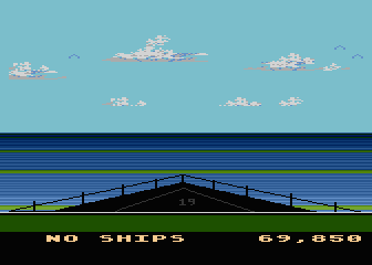 There was also a port done by Paradox to the Atari ST computer in 1988. This version has a few differences, such as endlessly playing a shortened version of the game’s already short theme song throughout all of gameplay, having an awful framerate during the ship-to-ship combat segments, while missing details like the birds in the sky. However, it also added some sound effects and visual details. For instance, during sea-to-air combat, instead of taking place in a black void, the missiles are being shot out of the sky over a mountain range.