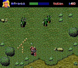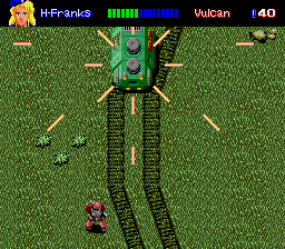 The hero from the first game is back, but this time, the mission gets personal, as the enemy is after his own hide. His N.A.P. is equipped with a Vulcan machinegun, which has the advantage of enabling him to change shooting directions while standing still. A bazooka is his secondary weapon.