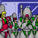 The only other survivor from the spaceship, Hanna wears a pink N.A.P. (as does the only other girl in the game, of course!) which carries the same Vulcan as Bowie’s, in addition to a laser with unlimited range. She has no function in the game’s plot whatsoever.