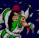 Randy shows up to provide Momoko with the information and power armor to go after Bowie, and also not-quite-so shockingly reveals to her that her brother is alive. His spread shot is the single most effective weapon in the entire game, even though its range is a bit on the short side. This is made up for by his secondary weapon, a missile launcher that works similar to the bazooka wielded by Bowie, but shoots almost over the whole screen.