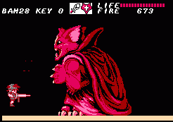 Defeating the dungeon boss will result in the same expansion of the game world, with one exception. Once you face the final boss you need to get yourself killed, because you won’t have the Magic Sword yet (annoyingly this takes away a life and is unavoidable). Clearing all the dungeons replaces the red lizard thing with a woman who gives you the Magic Sword with which you can finally put that satanic gremlin in his place.
