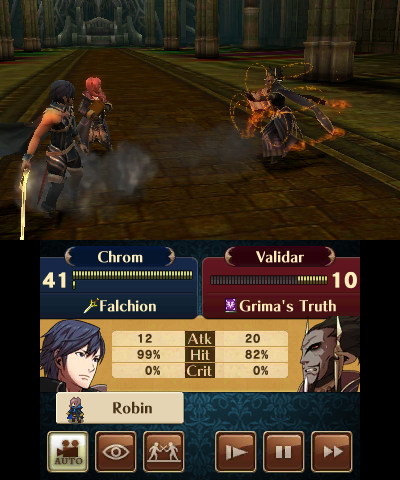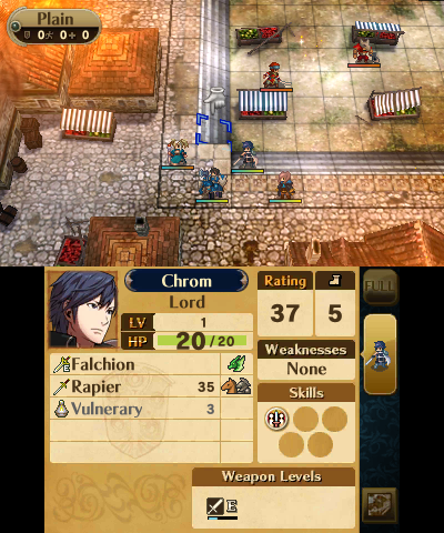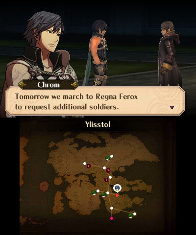 Awakening takes place in roughly the same time line as Marth’s, but about 2,000 years after his time. The story revolves around Chrom, a descendent of Marth and the Prince of the Halidom of Ylisse (pronounced “ee-leese”), on a continent of the same name, and his followers, a peacekeeping group called the Shepherds, as they find themselves swept up in one war after another with Ylisse’s neighbor, the Theocracy of Plegia, and Valm, an empire from another continent.
