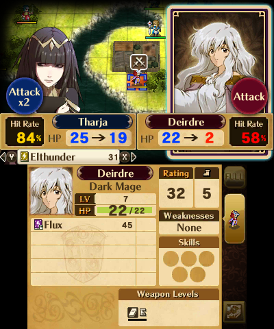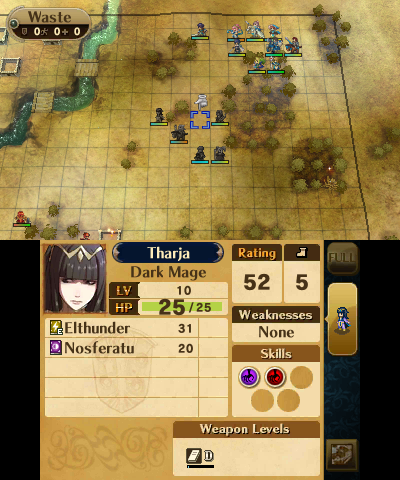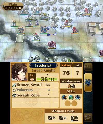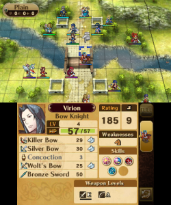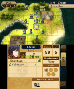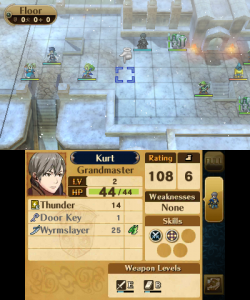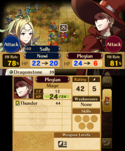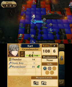The reclass system from the DS remakes returns, with both a small downgrade and a massive overhaul. This time, all units have only a few classes to choose from, depending in the individual (with the exception of the Avatar and any direct offspring thereof, who can reclass to anything their gender permits) and instead of the preparations menu, it’s done through Second Seal items, which are rare at first, but purchasable at a store later. With a system reminiscent of Final Fantasy Tactics, all classes have two skills that can be learned at certain levels (1 and 10 for unpromoted classes, 5 and 15 for promoted classes, and 1 and 15 for special classes), and those skills are kept, even after a reclassing or promotion. Characters’ levels return to 1 not only upon promotion, but also when reclassing, while the same basic stats are maintained. So by reclassing several times, characters can level up indefinitely, their growth only limited by their stat caps. This isn’t necessarily a bad thing, though, even though if used too much, a unit can become game-breakingly strong, as it means there aren’t really any good units or bad units when all of them have the same potential.