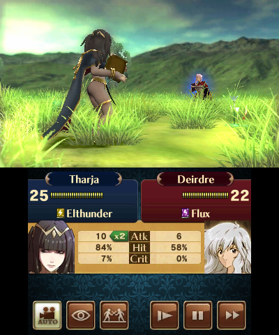 Fire Emblem: Awakening has a great deal of DLC that can be obtained via Spotpass (for free) and the eShop (for a price). The former DLC selection contains missions to recruit a few extra characters from the game’s story, legendary weapons from previous games, as well as earlier Fire Emblem characters. They’re called “Einherjar” and appear as official artwork outside of battle, but during combat are Avatar models with blue auras, made to look like those characters. The results are mediocre at best.