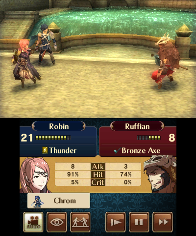 There a three difficulty settings and a hidden fourth: Normal, Hard, Lunatic, and Lunatic+. Normal is beginner-friendly and Hard is the standard difficulty for series veterans. Lunatic, however, is a massive leap from Hard. Enemies are both great in number and so individually powerful that newer units, even at the beginning of the game, stand little chance against them, with no middle ground, making the difficulty settings ultimately feel uneven. Even players who beat the game on Hard Mode, will still have a hard time beating even the first chapter without losing a unit. Lunatic+ is basically Lunatic Mode, except the enemies have randomly-determined skills that are always active (including one that causes enemy attacks to always be 100% accurate, rendering half of the strategy behind the weapon triangle and terrain null and void). At this point, it isn’t strategy anymore, but a sheer exercise in luck. Fortunately, Casual and Classic Mode also make a comeback.