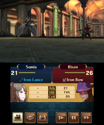 The graphics are very good. The maps are beautiful and the overworld sprites are surprisingly detailed. Even better are the animated cutscenes, which look spectacular with the 3D mode on. However, the character models in cutscenes and battles lack feet for some reason, which could be a little distracting to some. The battle animations are fluid, if somewhat awkward at times and a little slow. Thankfully, there is a built-in fast-forward function. Critical hits are shown with character cut-in portraits and a small variation in the attack, which is a bit of a letdown, considering criticals had several neat variations in Seisen no Keifu. While the battle scenes still look neat nonetheless, they do tend to get repetitive after a while. Fortunately, like in previous titles, they can be turned off.