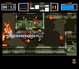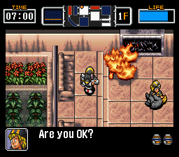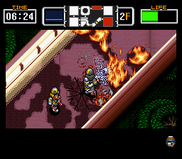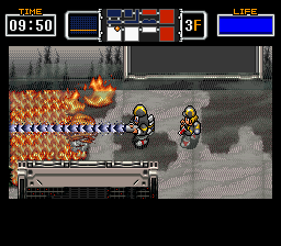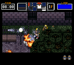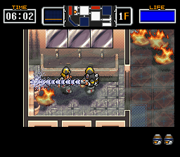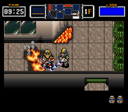 Much of the building shows fire damage to begin with, and when the flames spread out they actually permanently char what parts of the floor they set fire to. The long burning flames have also filled many of the rooms in the building with thick, wavy, clouds of smoke. It’s a great looking game overall, if a bit basic. Couple that with fairly decent music, and its intense gameplay, and you’ve got one of the best overhead action games of the 16-bit era.