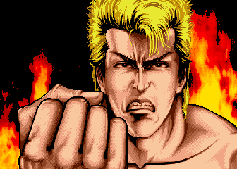 After one more segment of beating on fodder, you’ll reach the boss of the stage, either a giant, bipedal crocodile, or a pissed off shark. These fights are all about mashing, because you’ll need to pound the bottom left and bottom right buttons as hard as you can to reduce the bosses health to zero. Even when you do this, though, you’re still not done, because the boss will apparently go Super Saiyan and attack you one more time. It’s here where your score matters, because the closer you are to your quota, the less punches you’ll have to get in before you can finish them off. And finish them off you will, oh yes. While all you do on the crocodile is sending him plummeting to the ground with a Mortal Kombat-style uppercut, for the shark… Randy grabs the shark’s mouth with both hands, and pulls so hard he rips the shark in half with his bare hands, sending its internal organs flying through the air.