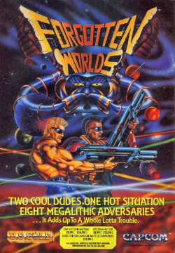 Unleashed by Capcom into arcade rooms the world over, 1988’s Forgotten Worlds chronicles humanity’s last stand against Bios, the King of the Gods, a tyrannical alien deity who, along with his divine minions, pulverizes Earth’s military defenses, conquering the planet in a matter of days. In a desperate bid for survival, humanity creates two soldier-saviors and tasks them with dispensing death and destruction upon their oppressors, thus ensuring that not just one god, but that all gods, are dead, buried, and… forgotten.