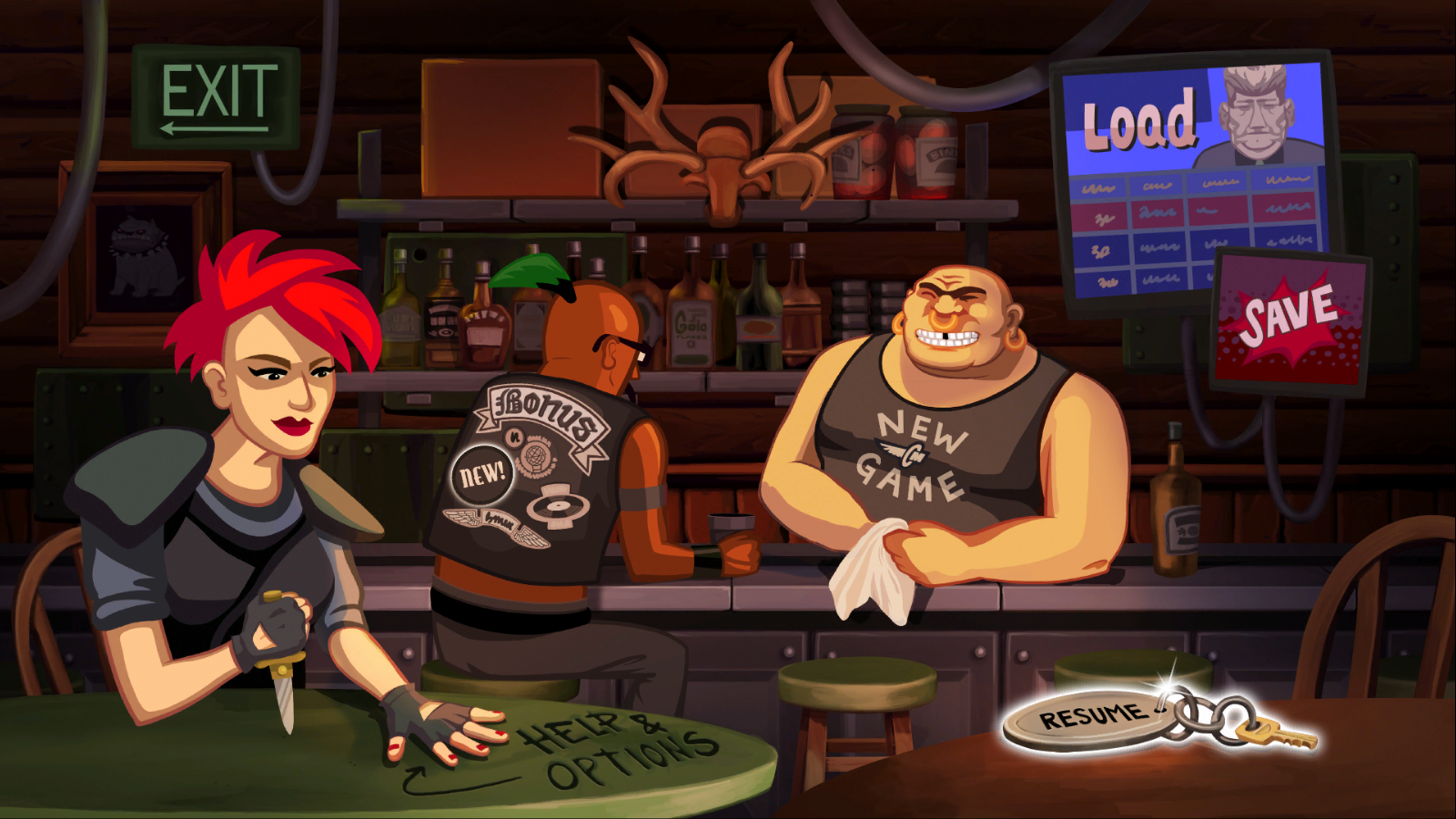 The first time you control Ben, he’s still stuck in that dumpster, left for dead and none too pleased with the thugs who stuck him there. Your first act is to break out of it by punching straight through its lid. You can stick around and kick it, if you’d like (“Take that.” He quips nonchalantly. “And that.”) You’re unable to start your bike (“Some joker took my keys.” Ben states, slightly irritated. “I don’t like that.”) so the first step is to get back inside the bar. The door, of course, is conveniently stuck, but that’s nothing a quick boot won’t fix. The bartender will claim ignorance, although he’ll talk quickly when you grab his nose ring and slam him into the table. (“You know what might look better on your nose? The bar.”)