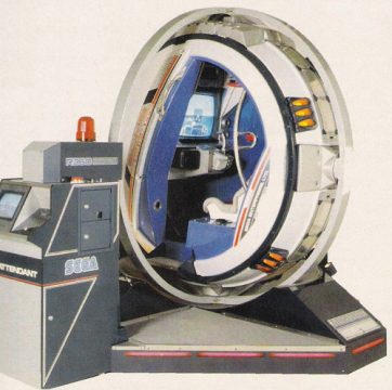 But fast paced action wasn’t necessarily G-LOC‘s goal to begin with. In the arcades, certain cabinets (dubbed the R360) featured a seat that could physically turn back and forth and even upside down, greatly enhancing the immersion. A safety bar keeps the player in place (like amusement park rides) and an emergency stop button would turn the cockpit to its upright position. There’s even an option to just sit back and let the game play itself, making G-LOC feel more like a ride. Naturally, this was an incredibly expensive machine, so it didn’t exactly see widespread distribution in arcades.