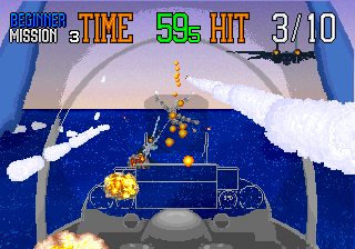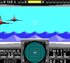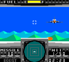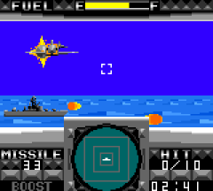 The Game Gear version (available on the 3DS Virtual Console) goes off in a completely different direction. You’re given a choice between several missions, with the usual goals of blowing up a certain number of planes or sinking a certain number of tankers. Depending on how well you do, you’ll get points which can be used to upgrade your plane. You actually control a cursor with only limited control over your plane, making it feel like a static shooting gallery. The graphics are worse than the SMS version, and it doesn’t run smoothly either. Your fuel meter also acts as a life gauge, and when you get blown up it’s game over. An interesting experiment.