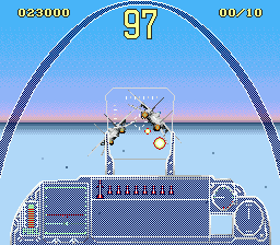 Since this gimmick was the big draw for G-LOC, all of it was lost in the home translations, which weren’t even powerful enough to recreate the game itself. The Genesis version, ported by Probe Software, can’t handle all of the graphics, but most of the gameplay still holds up. It’s a longer but easier game, which makes it less frustrating too. You can use points to restock weapons or upgrade your equipment, since this doesn’t happen automatically. There’s a bit of extra window dressing, like the mission maps between levels and the wingman who issues your orders. Also, some levels alternate between first- and third-person views. The third-person stages are a bit strange, since the horizon doesn’t rotate and your fighter seems to move along a parabola.