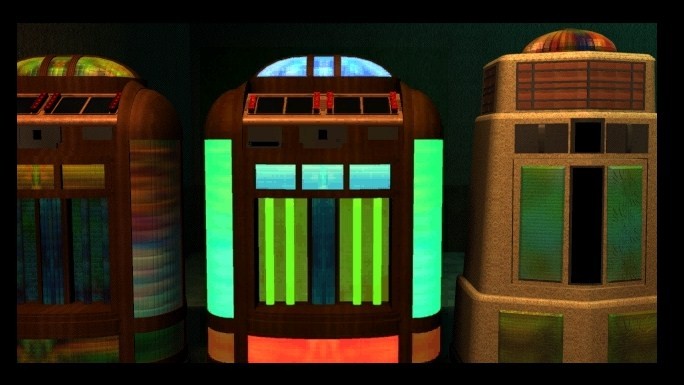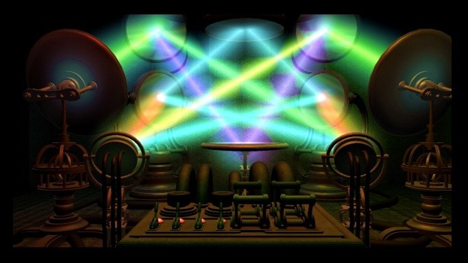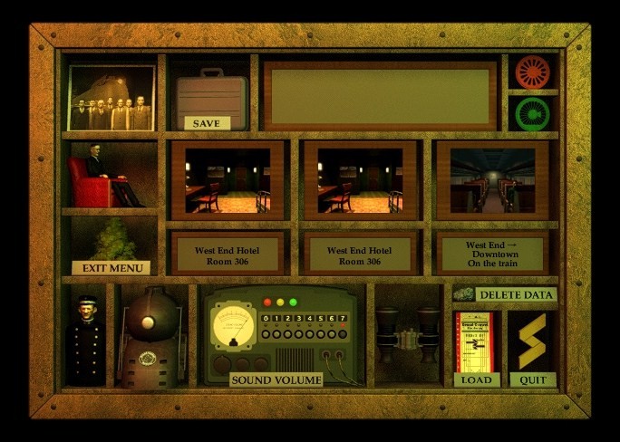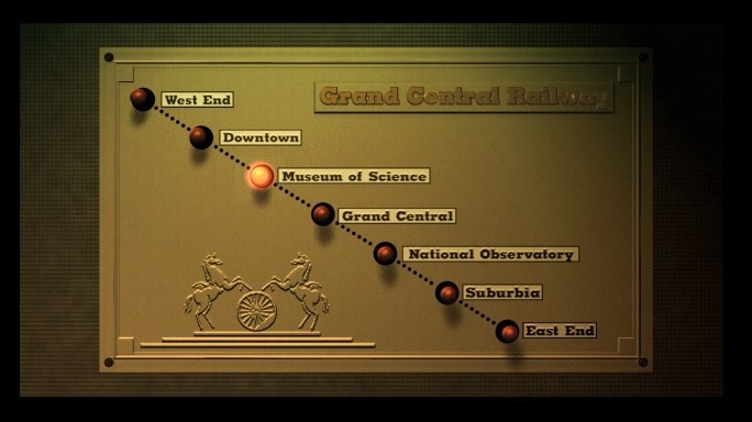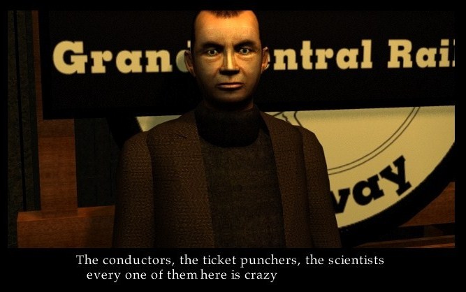 Gadget is presented in a slideshow format with animated linkages, but to an amazing effect. It uses consistent rules for its navigation, and it is always apparent through the cursor which directions you can go. While the textures and details are somewhat simple by today’s standards, the visual design of the game is still absolutely stunning. There is an intense retro-futurist look to everything, with giant radios, Buck Rogers airplanes and art deco locomotives. The trains are a focal point, as most of your time is spent either on them or at one of the stops along their routes, and the work that went into their design is more than evident. The most bizarre piece of machinery is the Sensorama, a massive device that uses light and motion to cause hallucinations in a human subject. It is central to the plot, and you are forced to use it numerous times. These psychedelic episodes are one of the highlights of the experience. The characters all look a bit creepy and obviously artificial, but almost stylistically so.