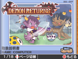 Demon Returns looks and feels a lot like Super Mario Bros., although there are some very fundamental differences. There are similar power-ups, which cause your demon to grow, and second power-up that allows you to fire wind projectiles. The world is full of destructible bricks, although they need to be directly attacked instead of being hit with your head. There are vases around each stage, which can lead to hidden areas, but can also contain plant-like enemies which breathe fire. Even the level structure is somewhat similar – each world consists of four levels, broken up into outdoors level, an underground level, another outdoors level with a slightly different tile set, and a castle dungeon. There are four worlds in total, making for a total of sixteen stages. That’s half the length of the original Super Mario Bros. – not bad for a “mini” game.