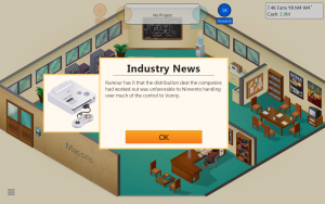 It’s a long grind of a game, but it has all the addictive qualities that come from the tycoon genre in full form, if not more refined. The mechanics and choices are significantly simplified compared to all the resource management of most tycoon games, allowing for more engaging play and experimentation. You can try a run without publishing deals, attempt to make strange combinations that defy the normal styles the game suggests you make, create ever growing mega-engines or specialized ones for different genres, and so on and so forth. While there are some obvious patterns and algorithms to memorize after several hours of play, knowing them only serves to make the game a deeper time sink. There’s also a lot to do late in a game, such as build research centers to look into online distribution and even manufacturing consoles, rewarding skillful play with new mechanics. It keeps finding new ways to hook you in at every turn (including a mess of random events), which becomes its strongest quality.
