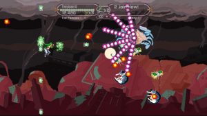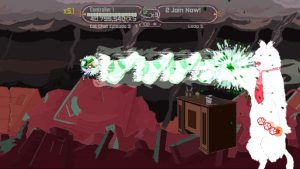 The game itself is a horizontal shooter, with a big focus on scoring mechanics. Shooting enemies will slightly increase your multiple, as well as grant you cash to build up your “parkour” (AKA laser) bar. You can also sacrifice half of your laser bar to slow down time and cancel out any bullets with your beam. The same level is looped over and over, progressively getting harder, and while the scoring is fun, it’s a little bit too easy. When placed in the context of a standard level-based game, this would easily be amazing. It’s a funny game too – all of the enemies you fight are comprised of the commercialized (fictional) junk you see on the fake dashboard. The added scoreboards to the Steam release give this title more value than the XBLIG version. The Steam release also makes some balance tweaks, and adds a boss fight that appears after a few loops – the cat from the “Cat Chat” program.