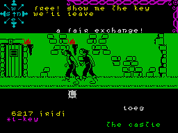 While the economy is easily tamed, the puzzles are not. Dun Darach is in a few ways easier and in most ways even more enigmatic than Tir Na Nog. Some solutions are obvious: characters like Dain will simply ask for a lyre, making life ten times easier. Of course, most puzzles are far more intricate. To navigate the maze-like castle, we need to find Skar, who's strolling around Dun Darach with an invisibility enchantment that must be dispelled. Once this has been accomplished, get ready to brush up on ZX Basic, because knowledge of this archaic programming language is crucial to solving the puzzle. Either way, while the game world is smaller, it will take more time to uncover its secrets.