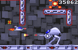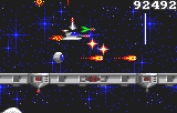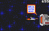 Where Gates of Zendocon really shines is with the sheer variety of challenges that it throws at the player. As you’d expect from 51 different universes, many of them offer obstacles that are almost or entirely exclusive to them. Some standout universes include one where you have to use your shield to navigate through falling rubble, another where you have to destroy the weakest parts of screen-wide walls to pass through them, a universe that restricts your scrolling capabilities while you deal with a parade of tanks and robots, and a universe full of bubbles that try to push you into hazards and foes. The most amusing universe of all is the secret one found by discovering a hidden path within universe “TRYX” – it has you shooting through hordes of digitized heads of the staff who worked on the game! Discovering what each universe holds is the greatest joy that the game provides, so it’s worth using passwords to check out the stages you missed the first time through.