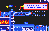 Gates of Zendocon features a combination of ideas and mechanics that make it different from most shoot-em-ups. For starters, the player can take three hits before dying. This also ties into the weaponry available to your ship, as certain functions become unavailable after taking damage. Your ship is equipped with a powerful laser that can be held for continuous damage, bombs that are dropped below your ship in an arc similar to the missiles in Gradius, and a shield that can block attacks and damage some enemies. Taking one hit disables your shield and taking two disables your laser, leaving you almost completely vulnerable. Clever players can even use the ship’s thrusters to deal surprisingly effective damage to anything behind them. It’s possible to repair your ship between universes by landing at the base that the player’s ship launches from, but some of them are booby trapped with an intermittent electric field that’ll kill you if you touch it, adding an interesting layer of risk.