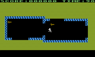 Gateway to Apshai was released on Commodore 64, Atari 8-bit computers and the ColecoVision. While the home computer versions are identical safe for a few minor visual differences and key mappings, the console port is a very different beast, with all new dungeons and faster gameplay. This in consequence also makes the game much harder than the other versions. Thanks to the numerical keypad on the ColecoVision controller, separate keyboard input is gone. No version looks as good as the “screenshots” on the back of the box, making an early example for false advertisement through retouched screenshots.