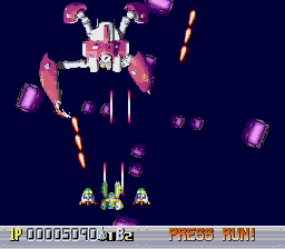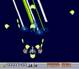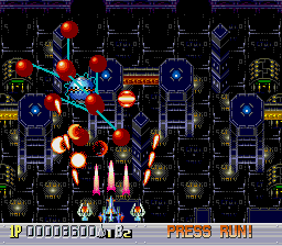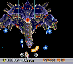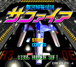 The difficulty is adjustable, but on the default settings, Sapphire isn’t too difficult. Losing a life only powers your weapons down one level, and you can pick up to nine credits on the option screen, which resurrect you where you die. There are a couple of cheap moments where the bosses fire lasers that come out of nowhere, but otherwise, it’s pretty lax as far as shooters go. It also throws extra lives and extra continues at you if you really exploit the scoring system.