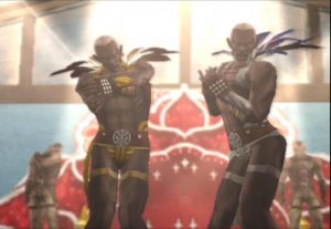 Gold and Silver are the “fabulous” duo who take part in what might just be the funniest boss fight the PS2 generation. When they first meet Gene, they waste no time in admitting to finding him sexy. After a short cutscene and a quiz (“Whats the name of our boss? ELVIS!”), they send their dancing cronies to beat him down. When you take care of their minions, they leap down from a stage and take you on. While Elvis has his signature cigar cannon, and Shannon uses her cane to transform you into a puppy, Gold and Silver prefer to slap and thrust their asses into your face. If they manage to grab you, one will toss you into the air while the other beams down right onto Gene with his elbow.
