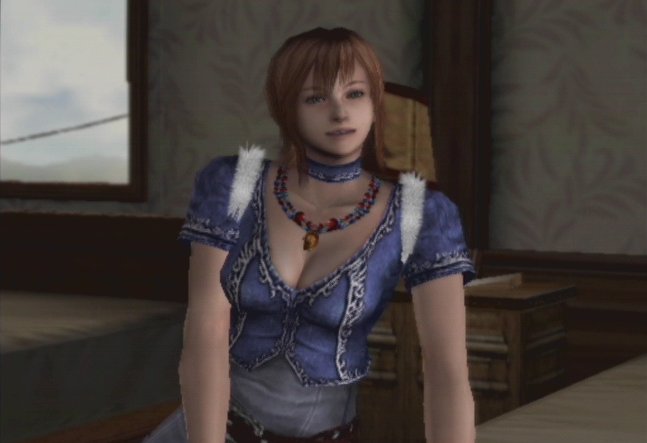 The 19 year Olivia runs away from trouble and comes across some more trouble. Gene comes to her rescue and bestows upon him the power of God through a new arm. As you progress through the game, you unlock special pictures which can be viewed from the status screen. These are really pointless pictures of Olivia doing various things. Reading books, getting drunk, and bathing.