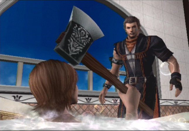 God Hand is also another case where the Japanese version features English voice acting with Japanese subtitles. Right off the bat, you can tell that the Japanese subs are vastly different from the English dialog. One cutscene features a guitar-wielding maniac screaming “Long live the guitar!” with the subtitles stating in english “I LOVE GUITAR!”