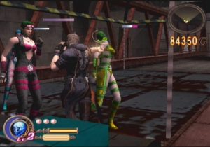 Much like Resident Evil 4, God Hand has a context sensitive button. If an enemy becomes dazed, you can press the circle button to perform all kinds of actions. For heavier set characters, you can use a move called the Stinger. For thinner characters, you can suplex them headfirst through the ground or punch them rapidly until they collapse. Unlike Resident Evil 4, all these actions will put you into a circle mashing game. Mashing a single button has never been this fun in any other game out there, because it causes action to speed up to absurd velocities. It’s ridiculous how fun it is, really, and all moves end in a humorous fashion. For thinner characters, they’ll get their head stuck into the ground when they are suplexed near death, or sent across the screen if they fall victim to Gene’s fist. Gene pulls some wrestling moves on the bigger guys, and all female girls will be spanked on the ass until they are knocked around the world.