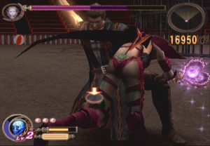 When brought across the sea, several changes were made to the game to prevent confusion. The most minor change is the renaming of the God Reel, now called God Roulette. One item in the game called Chihuahua Curry was changed to Puppy Pizza. Curry is a popular delicacy in Japan, while here in America it is relatively unknown. Another change includes the removal and addition of a new attack. In the Japanese version, Gene had a pan technique he could use from the God Reel. For a small bit of damage, a pan will fall from the sky and knock Gene on the head, granting him invincibility for a couple of seconds. Why this was removed is beyond me. Maybe it was the sense of humor, maybe it was because in super plays, people were abusing it. But then again, the whole reason anybody would use this technique was to sacrifice a small bit of health for invincibility. Instead, we got a new move called Head Slicer. The only thing special about this move is its ability to remove an enemy’s head. No blood, only a decapitation that works randomly. And the head goes flying into the air, literally. Had they kept the pan in, the game would probably have been dropped to a Teen rating as opposed to Mature. The Head Slicer move was probably pulled from the list in Japan due to the CERO rating board not taking too kindly to decapitations in games (as was the case with the heavy censorship for Biohazard 4). It does a small amount of damage, and for 8000 gold you can get better attacks.