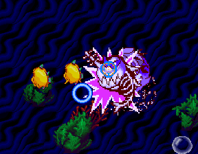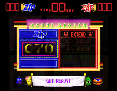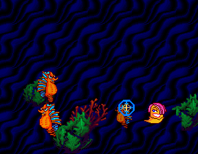 The gameplay is mostly the same but mixes things up from the first game by having the enemies go towards and away from the player in addition to moving around the screen, making use of some nice scaling effects. The bosses work the same way as in the original game. Bubble Trouble also features five scenes instead of Golly Ghost‘s four. The game is also easier than Golly Ghost, and is more forgiving to play with a mouse than the first game as well. Some, however, might find it to be too easy compared to the original, so it really comes down to a matter of taste.